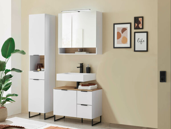 Badezimmer Badmöbel -Set ASPEN 80 cm Hochschrank Spiegelschrank Wbu Set 2